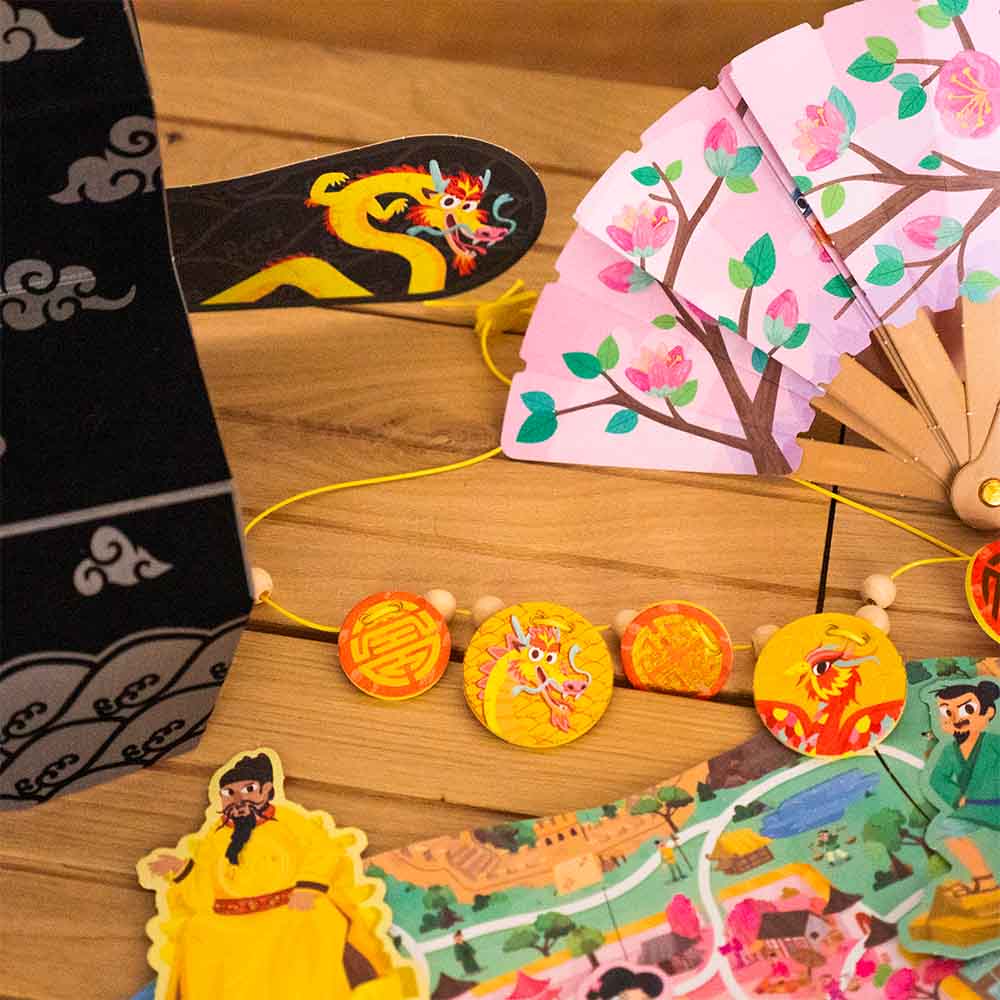 Explore la Chine Impériale pour découvrir sa culture passionnante, son artisanat, ses grandes constructions et ses expéditions… Poursuis tes découvertes en participant à une quête spéciale pour l’Empereur Yongle, sous forme de chasse au trésor, et en fabriquant des objets emblématiques de cette époque comme l'éventail, la toupie, ou le futou !
