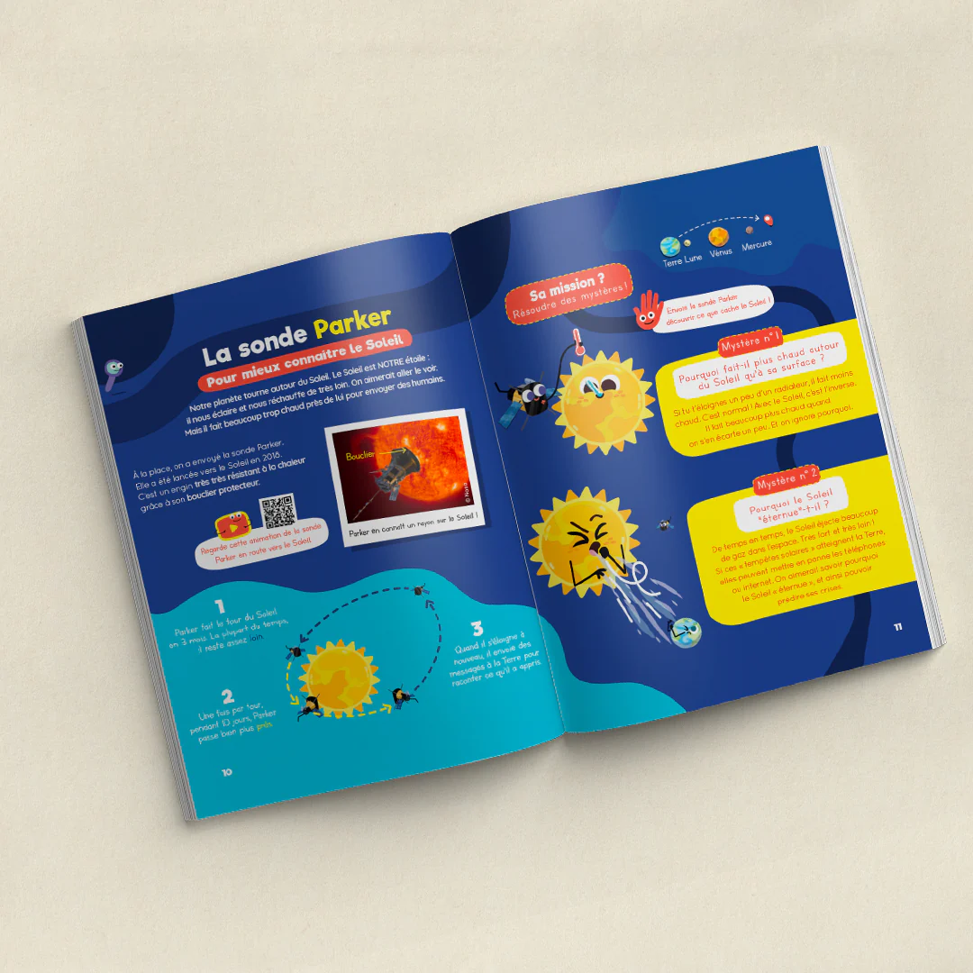 Explore l’immensité de l’espace à la découverte de 4 engins spatiaux incroyables conçus par l’Homme, et en réalisant tes propres missions ! Fabrique ta console de contrôle d’engins et joue à faire défiler le décor tout en les guidant un par un pour mener à bien leurs missions. Découvre comment les engins Parker, Crew Dragon, James Webb et Perseverance fonctionnent, et ce que les scientifiques apprennent grâce à eux à propos du Soleil, des planètes, et de l’espace.
